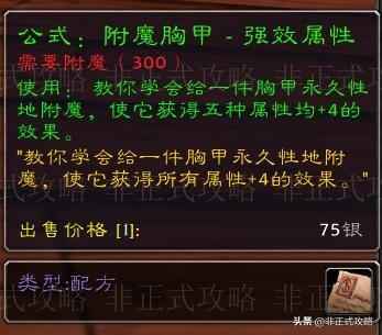 2、公式:附魔胸甲-强效属性。这个是60+级的精英怪和世界BOSS掉落,掉率0.02%~1.89%之间