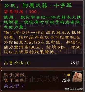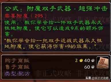 3、公式:附魔双手武器-超强冲击。这个由60+级的黑手精英掉落,掉率3.48%。