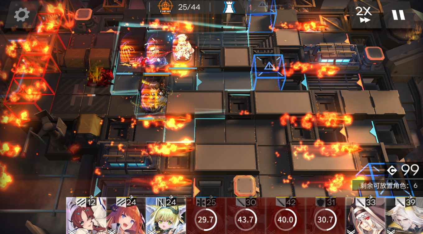 开局先扔桃金娘,然后布置棘刺+夜莺,一定要放医疗,否则桃金娘撑不住,之后放煌和白面鸮,这里可能会出现cost不够的情况,用风笛顶一下即可。