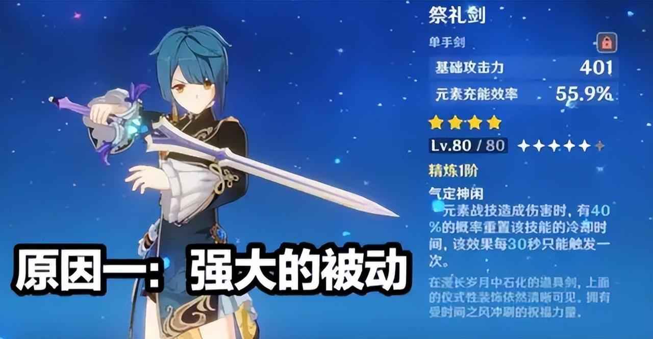 这把武器可以适配的角色就比较多了,托马、云堇、香菱、申鹤甚至0命的雷神都可以用,优秀的充能可以让你的圣遗物或者队伍尚未成型时保证你的输出顺畅,正所谓“伤害不足循环来凑”,只要循环好输出不会差到哪去,萌新们抽到了这把武器可以直接拉满过渡。