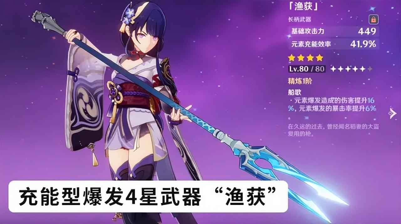 咱们盘点系列的老常客了,不是我一直想提它,是因为它实在太优秀了,在四星长柄武器中渔获可以说泛用性和伤害都拉满,称它是准五星武器也不为过。