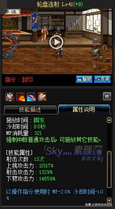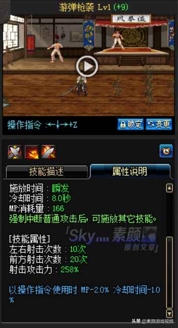 [游弹枪袭]*3、[回旋飞剑]*2、[全方位射击]*2、[其余技能]*1