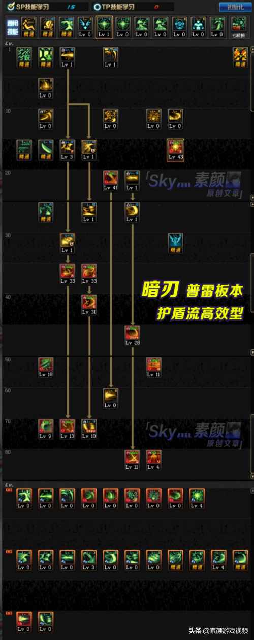 但这套加点会让暗刃损失很多细节伤害,建议大家在职业熟练度有所提升之后,还是酌情换成前两种。[新手向简单型加点]对应的20秒技能分配方案为: