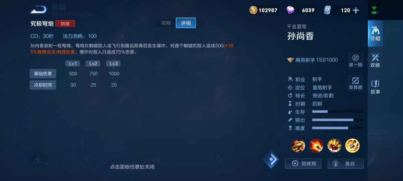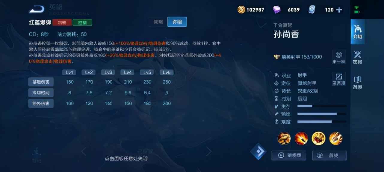 1、孙尚香的特点:有爆发、有穿透、有位移能自保、容错率高