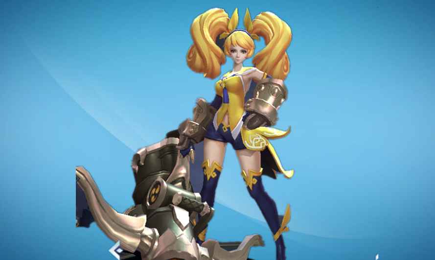 限时上架皮肤,勇者皮肤。金色的卷发双马尾,黄色的技能特效,给人一种干脆利落,大大方方的样子。