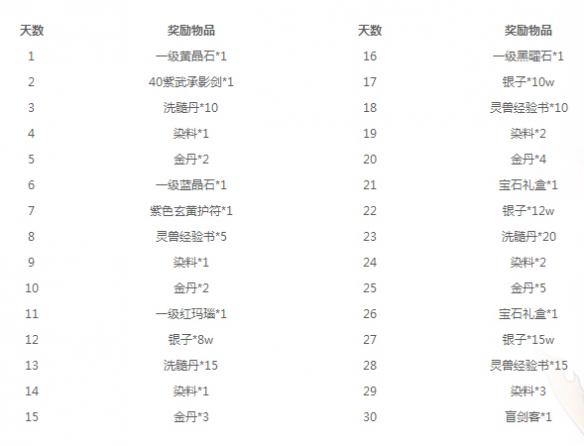天数奖励物品天数奖励物品