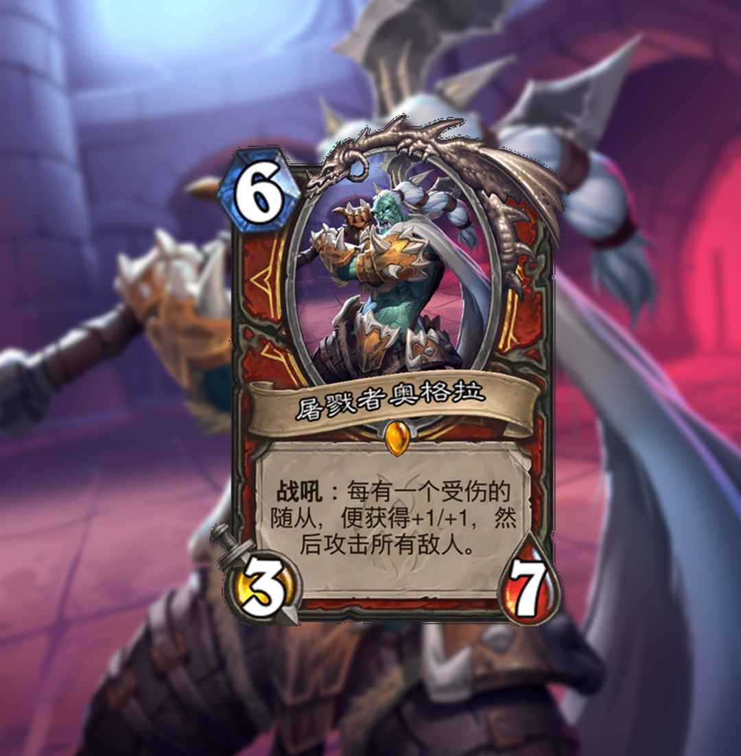 屠戮者奥格拉就是我们老朋友曼科里克拜托我们寻找的妻子,在贫瘠之地被野猪人残忍杀害后,奥格拉进入暗影界加入不朽军团,一边屠戮锐皮虫一边还在吐槽虫子的叫声不如野猪人悦耳,多少是有点地狱笑话了。而奥格拉加入炉石传说后,终于可以让他们夫妻俩在同一套牌里团聚了,不知道会不会有彩蛋呢?