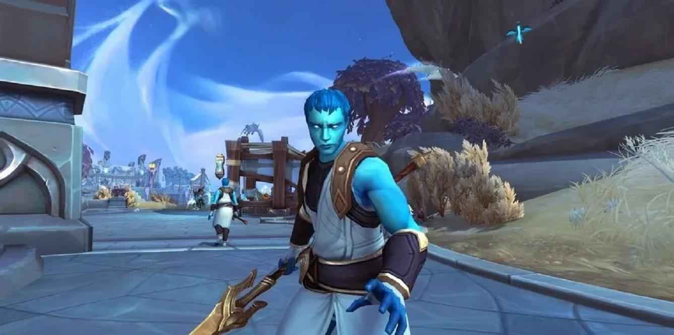 圣物酱右边的小蓝人,肯定是一位格里恩,目前来看最大的可能性就是裴拉戈斯。裴拉戈斯是一位女性,死后进入暗影界选择以男性的身份重生,是魔兽世界里首个跨性别角色,炉石传说里也有这样政治正确的角色,比如设定中是非二元性别的晨拥,不过在炉石传说的刻画中没有那么违和,很多人都没有关注到这一点。后来在9.2的剧情里,裴拉戈斯成为了晋升堡垒新一任的仲裁者。