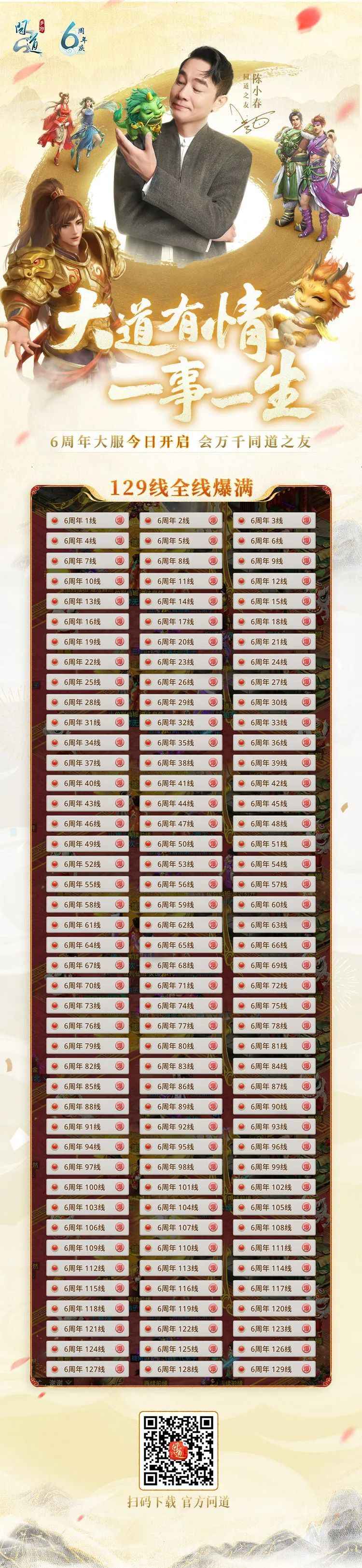 各位道友好!万众瞩目的年度大服【6周年】终于在4月22日上午11:00正式开服啦!年度大服不仅预约热度突破520万,创造了历史新高,人气爆棚!开服后129条线更是全线爆满!