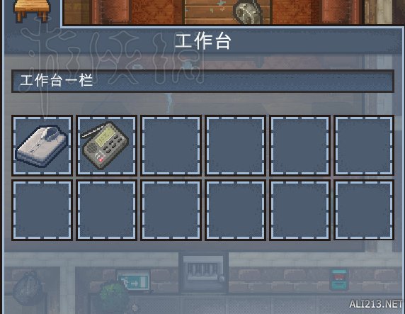 平民服装 和 无线电接收机 在二楼如图所示的工作台里。