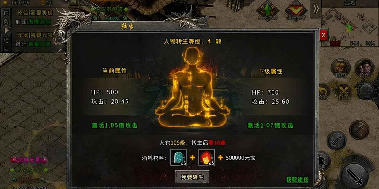 其实这款游戏还是比较简单的,除了首冲的施毒术,还有就是赞助,毕竟游戏也不是强制玩家充钱,毕竟很多玩家玩游戏也是图一个乐子。这款游戏主要围绕着等级,转生,官爵和逆天改命这几个来玩,但是这些全都离不开元宝,所以很多玩家特别缺元宝,其实官爵还好,主要是转生需要的元宝特别多,前期只要靠着武林至尊的赞助就可以轻松四转,但是当要进行五转的时候,你就会发现仅仅是一个五转就需要50万的元宝,更不要说后面的六转和更高级转生了。