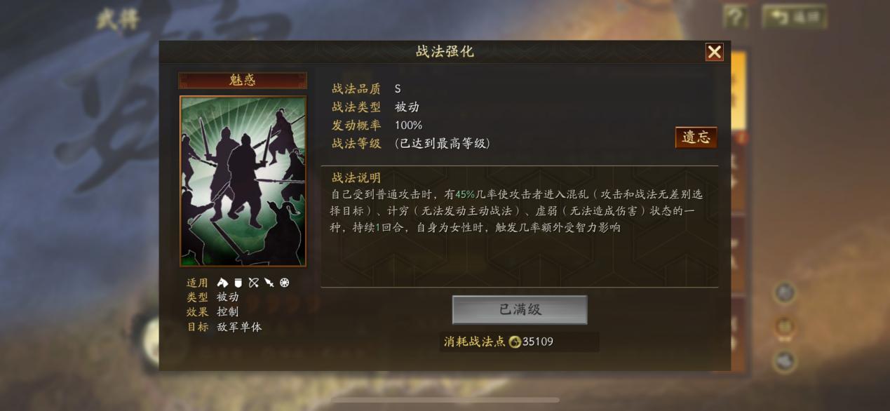 魅惑属于被动战法、和指挥战法、兵种、阵法有个共同点