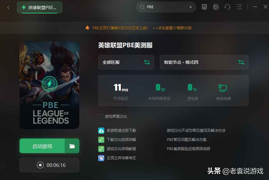 玩家如果游戏时看不懂外语界面,可以勾选奇游的pbe加速页面中的游戏界面汉化,再次打开pbe就可以看到中文了。