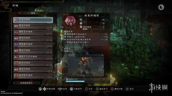 也正因为妖怪技和妖反在《仁王2》中有着如此重要的地位,相应的技能派生以及魂核的搜集培养,也被融入了游戏长线的成长体系当中。跟武士、武器、忍术、阴阳术一样,妖怪技也拥有了属于自己的技能树,游戏中前期通过合理分配自己的技能点,妖怪技方面的能力和收益也将发展出不同的玩法风格。而魂核的培养则更加类似于武器系统的“合魂”和“分解”,你可以根据实际情况需要合出更加强大的魂核,也可以将之分解为妖力经验值或者锻造武器的素材。总的来看,角色培养系统在初代《仁王》的基础上变得更充实,RPG属性也更强。