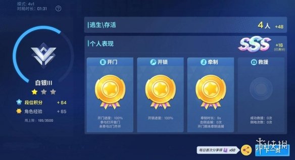 2、结算时达到升段条件,即可获得段位积分,最终的段位积分由人数分和个人表现分组成,个人评价达到S,个人表现分即可获得满分;