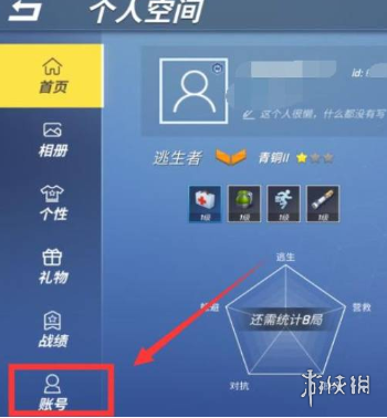 首先我们在游戏大厅,点击坐上当的个人头像,进入个人空间界面。