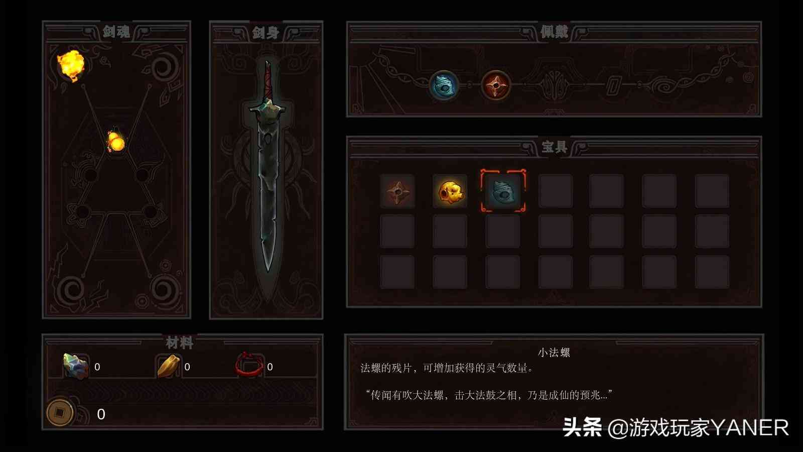 可以在地图上找到宝具进行佩戴,比如旋风珠,佩戴后在受到攻击的瞬间冲刺,能够释放独特的剑技。除了宝具之外,还有剑魂,比如我们找到的第一个剑魂药葫芦,找到后才可以喝药,找到火灵之后可以通过打雕像释放火球,去往之前去不到的地方等等,当然死亡后这些东西不会掉落,并且在死亡的地点会看到一个灵魂,可以将丢失的东西捡回来。