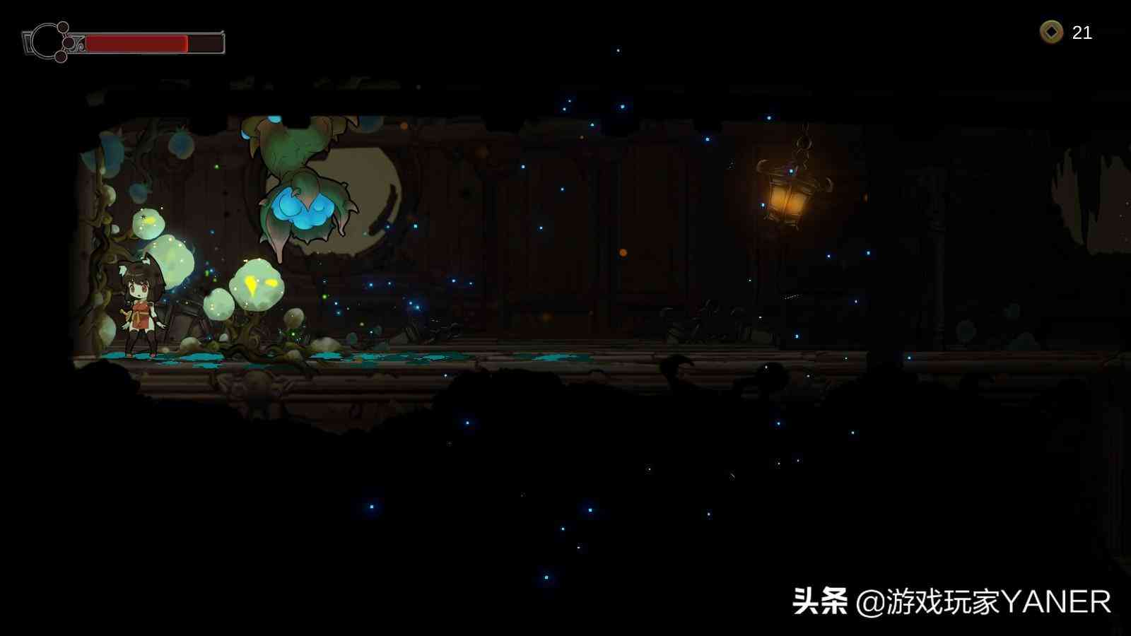 本作采用了手绘风格的画面,人物讨喜可爱,采用了类恶魔城的设计,硬核的怪物设计,让玩家需要进行攻击和闪避时间的计算,一旦失误就有可能需要跑很远过来捡尸,