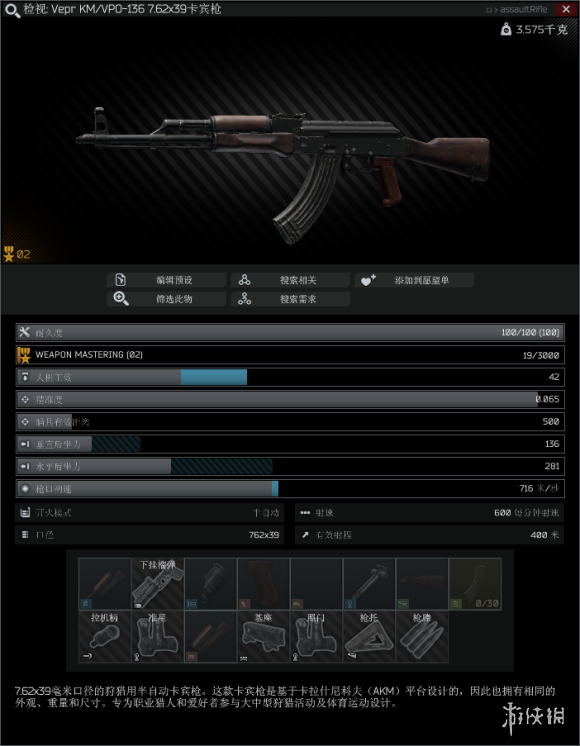 首先,Vepr136,只能单发的AK,而我上个版本熟练度打到了满级。