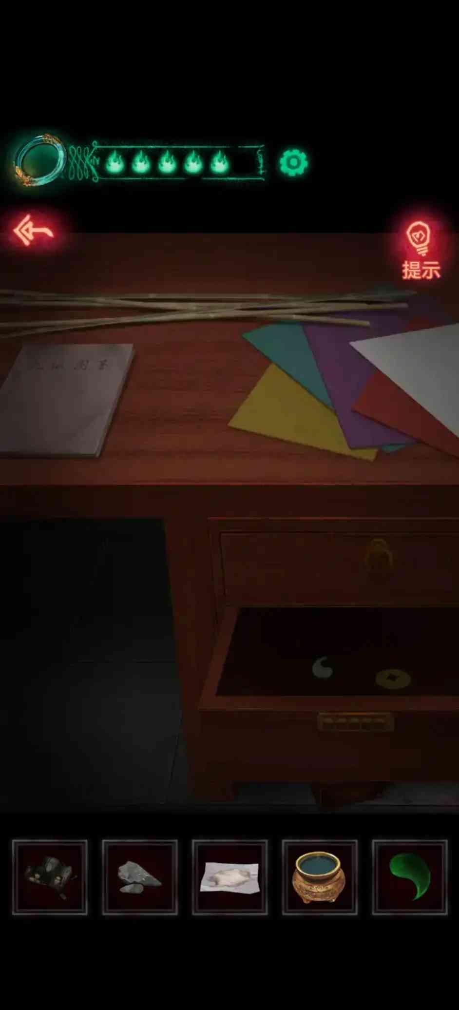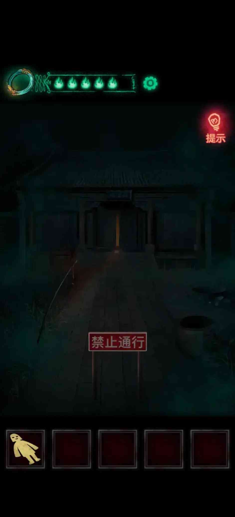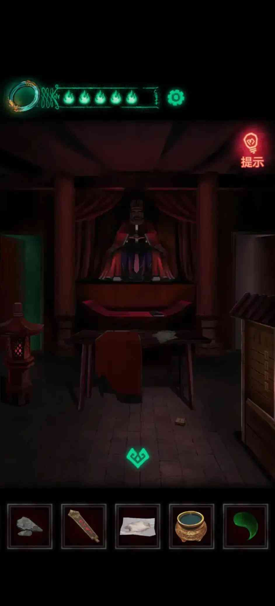 回到雕像前再次放上符纸人,点毛笔下白纸又会触发老人拿走符纸人,这次右边屋子也开了,进门~