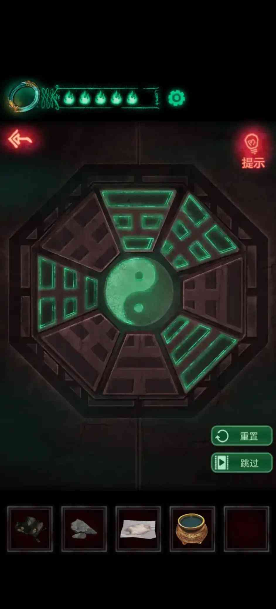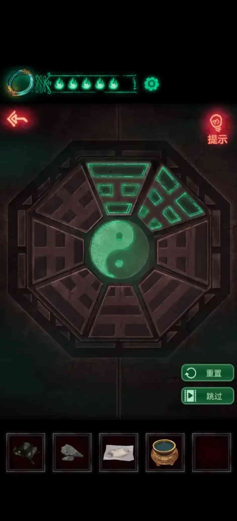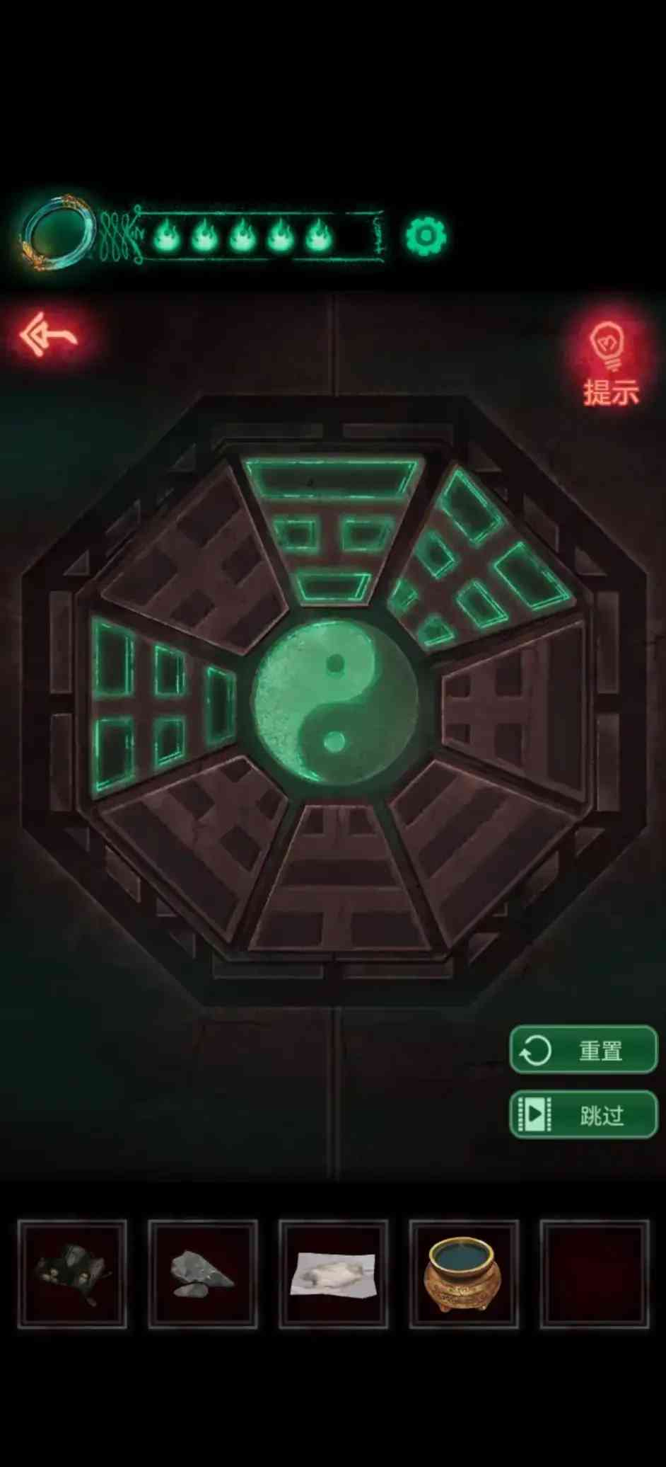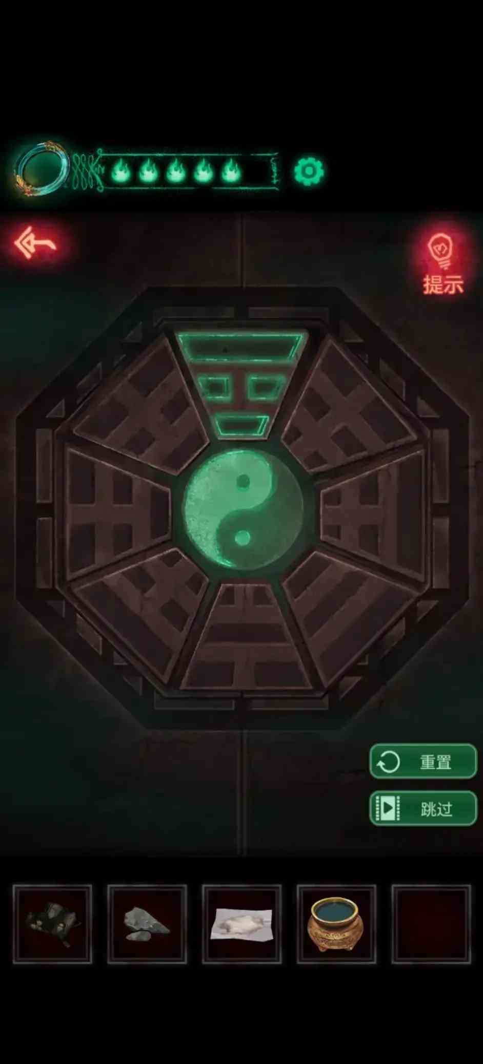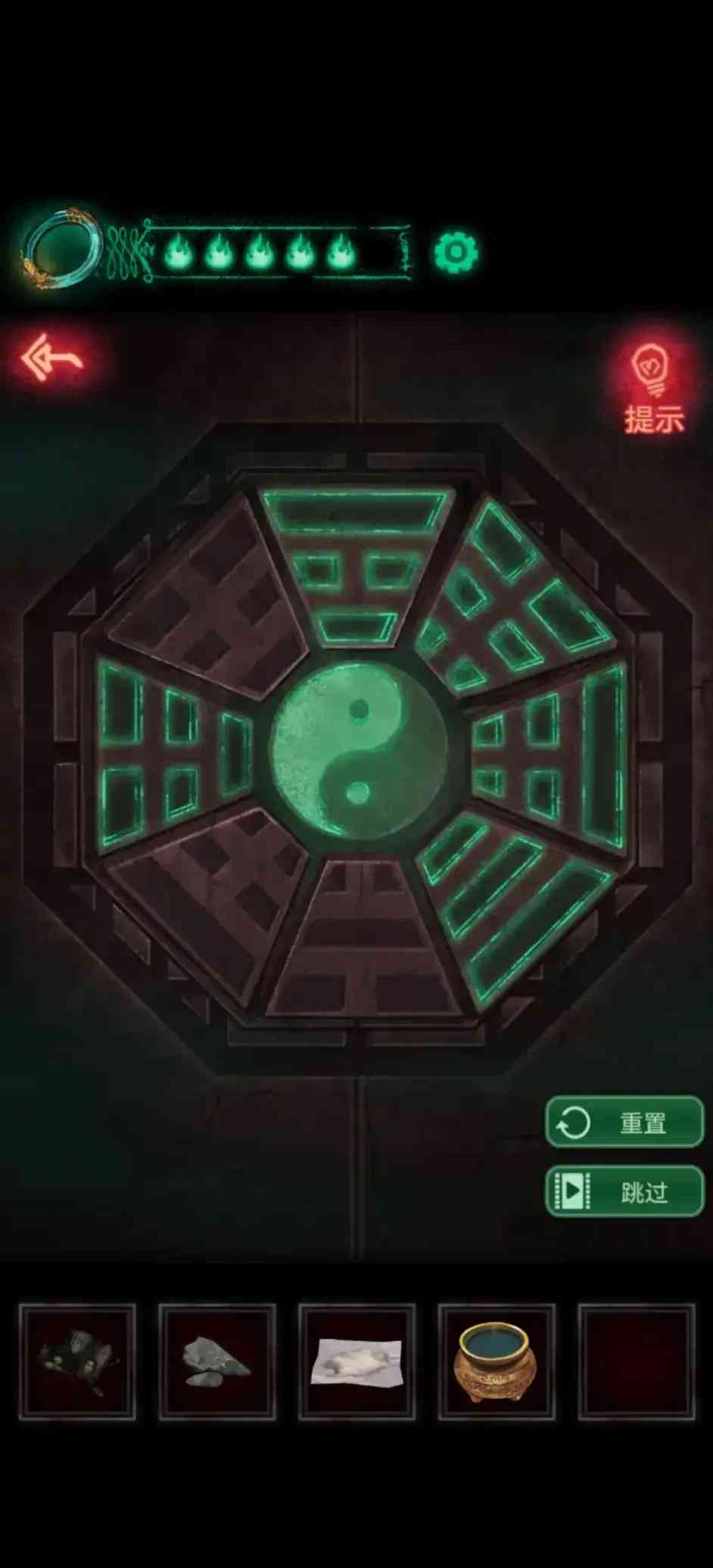 推理完了就可以拿走香炉把纸人放进去了,退出来用香炉在水缸取水,回来在笔架上放毛笔,在砚台里倒水放墨块,点右边鬼宿图玩一笔画游戏。