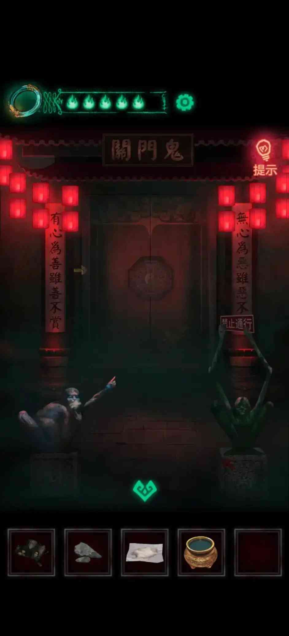 两块勾玉都放到小盒子上打开盒子拿到钥匙,然后奇葩的地方来了,还记得“禁止通行”吗?用钥匙把牌子螺丝卸下来,扛着牌子来到鬼门关,把牌子往举手雕像上一放~哎嘿,阴兵还真就禁止通行了,早知道有这牌子小哥还用费那么大事么!
