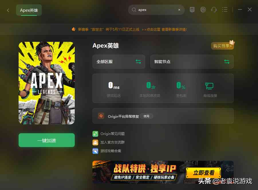 玩家打开奇游加速工具,加速apex英雄之后就可以了。apex英雄是海外的游戏,经常会出现延迟、掉线、掉帧等情况,玩家通过奇游优化网络之后,就可以有效解决问题了。