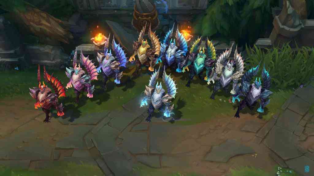 接着是屠龙勇士系列,凯尔和加里奥共享原画,凯尔的造型非常帅气,很符合勇士这个词,而加里奥似乎是反派的龙,结合背景的龙群加里奥似乎还是龙族的首领,但造型和色泽看起来都少了一些霸气,更像是一条温顺的龙。