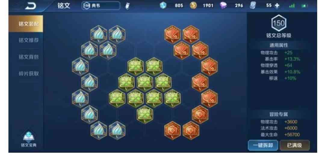 隐匿保证移速,鹰眼增加伤害,典韦的一二技能需要衔接普攻伤害带暴击铭文配合宗师之力与无尽让爆发伤害更足。