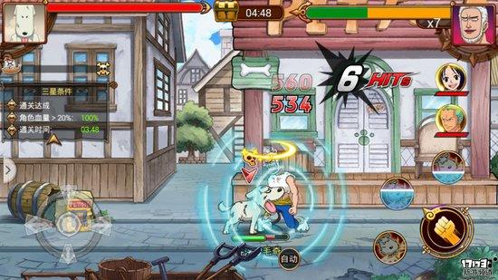 手游《航海王激战》在战斗的操作上依然是采用了虚拟摇杆搭配虚拟按键的设计,虽然游戏是横屏战斗模式,但是其Y轴在原有的模式上又增加了两条轨道,玩家能够轻松的在三条轨道上自由的移动切换来躲避敌人的一些攻击。虽说游戏的三轨设计相比起一些动作游戏稍显不足,但是在体验了游戏的后续玩法之后,还是能够体会到该玩法的独到之处。