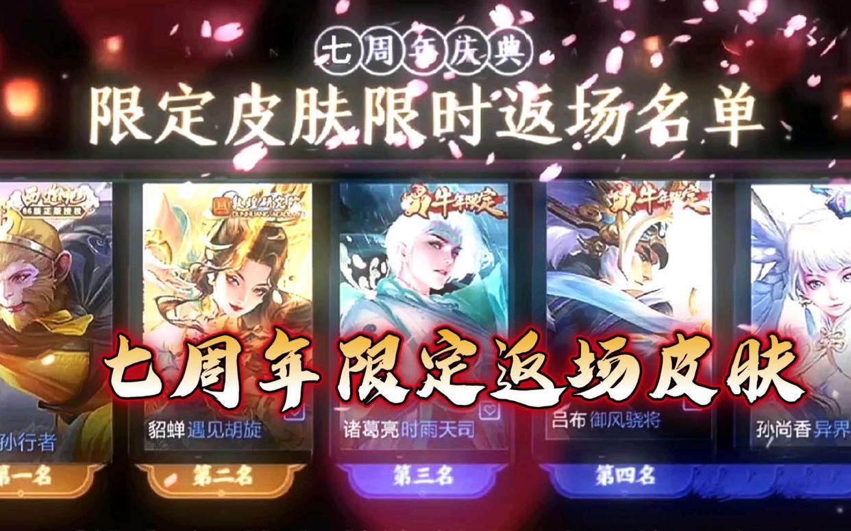王者荣耀新赛季还有几天就要一个月了,玩家们都应该在王者1星到10星之间徘徊吧。不得不说,王者荣耀每次新赛季开始的前期,能够上最强王者段位的,都是峡谷狠人啊。当然 了,王者荣耀在十月份还剩下十来天的情况下,七周年庆典也就要来袭了。那么,除了英雄调整和周年庆专属皮肤之外,还有就是每年必定会返场的五款限定皮肤人选哦。