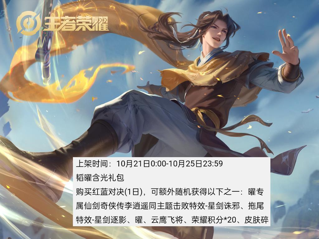 随着版本的不断更新,王者荣耀对于新老皮肤,都是设计了专属按键,同时还有部分英雄皮肤将拥有专属的回城和击败特效等等哦。比如说这次,周年庆之前的一次更新中,也就是21号曜的李逍遥皮肤,将会返场限定回城特效和拖尾特效哦。没错,韬曜含光礼包当中,玩家能够抽到李逍遥的限定特效哦,这次返场后续不知道会何时再返场了,所以有多余点券的玩家,还是建议入手的哈。