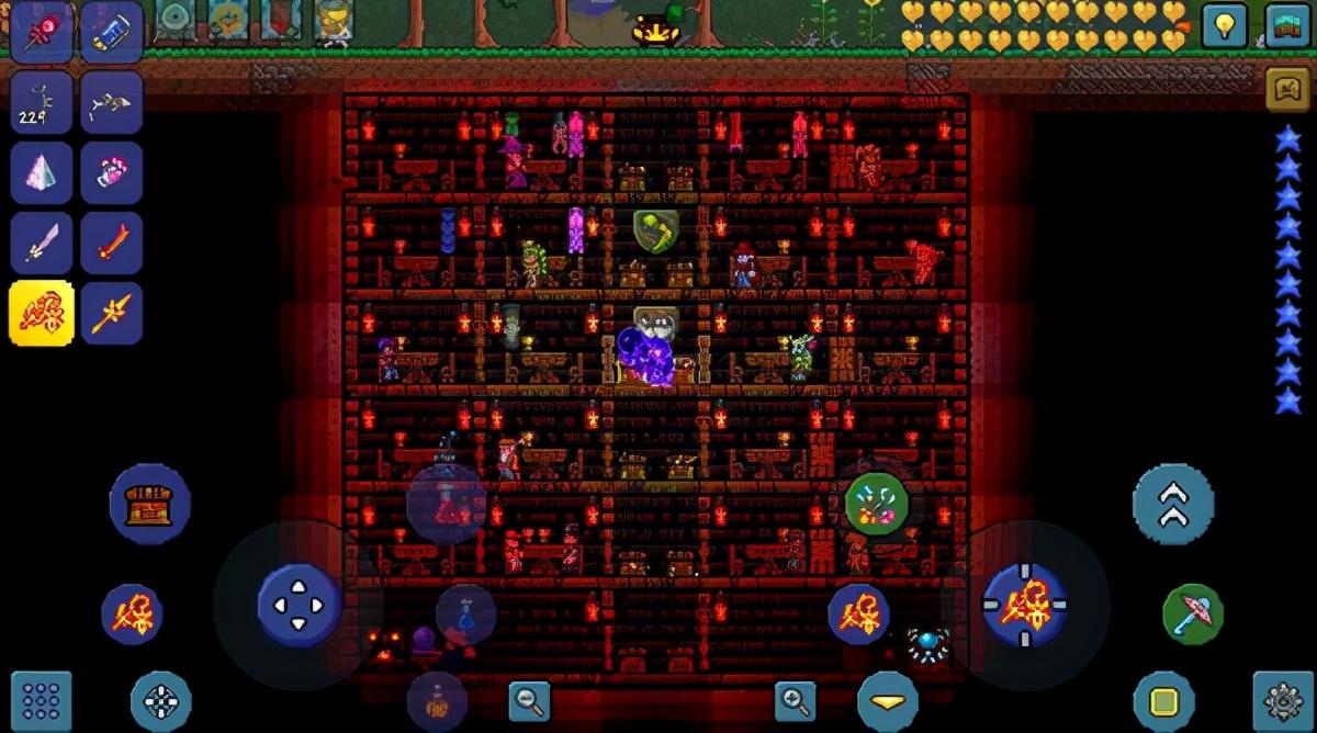 二、NPC幸福度系统NPC幸福度提高将会降价,并且会销售晶塔,晶塔可用来传送三、人物提升1、生命水晶(地下生成)2、生命果(机械三王后丛林地底生成)3、拾取坠星合成魔力水晶四、血腥/腐化/神圣1、腐化之地:*腐化之地是一种邪恶生物群落,有着深紫色的废土、死亡、与腐烂的主题,与其对应物猩红之地的红色血腥主题相反。每个世界只会包含二者之一,随机生成(二者都有 50% 几率)*电脑版/主机版/移动版或可由玩家在世界创建之时选择。二者都包含类似的危险并具有自己独特的敌怪、物品、和物块。由腐化材料制作出来的工具、武器和盔甲要比由猩红材料做出的稍微快一点但弱一点点,腐化敌怪的属性也整体上稍微低一点,比如生命、防御、伤害、腐化之地包含多个裂隙,是此生物群落在地下的扩展。裂隙沿直线向下方延伸,有些与水平连接通道相交,末端是暗影珠。恶魔祭坛通常会沿着裂隙的通道出现在其内部和四周。裂隙由黑檀石组成,可用爆炸物炸掉、用可从树妖 NPC 处买来的净化粉净化、或用梦魇镐/死亡使者镐及更高的镐挖掉。 腐化之地会蔓延,意味着它会慢慢地将相邻的图格转化为其腐化版本。裂隙、恶魔祭坛、和暗影珠只会在世界生成过程中出现,不会在通过蔓延而形成的腐化区域中生成。如果有足够的腐化成功接管一个新区域,该区域最终将使用腐化之地的主题音乐、背景、和水色。*必须要存在至少 200 主机版 前代主机版 移动版 3DS版 / 300电脑版 个腐化物块才能让一个区域被视为腐化生物群落。2、血腥之地:*猩红之地是一种邪恶生物群落,有着红色血腥的主题,与其对应物腐化之地的深紫色废土主题相反。每个世界只会包含二者之一,随机生成(二者都有 50% 几率)*电脑版/主机版/移动版或可由玩家在世界创建之时选择。二者都包含类似的危险并具有自己独特的敌怪、物品、和物块。由猩红材料制作出来的工具、武器和盔甲要比由腐化材料做出的稍有一点优势,猩红敌怪的属性也整体上稍微高一点,比如生命、防御、伤害。 猩红之地包含多个裂隙,将此生物群落扩展到地下。每个裂隙都有一个位于地表的入口,通向一个大的圆形空腔,然后分支成小的“手指”,末端是猩红之心。猩红祭坛通常会沿着裂隙的通道出现在其内部和四周。裂隙由猩红石组成,可用爆炸物炸掉或用梦魇镐/死亡使者镐及更高的镐挖掉。 猩红之地中的多刺灌木 草地上长出的多刺灌木 猩红之地会蔓延,意味着它会慢慢地将相邻的图格转化为其猩红版本。裂隙、猩红祭坛、和猩红之心只会在世界生成过程中出现,不会在通过蔓延而形成的猩红区域中生成。如果有足够的猩红成功接管一个新区域,该区域最终将使用猩红之地的主题音乐、背景、和水色。*必须要存在至少 200 主机版 前代主机版 移动版 3DS版 / 300电脑版 格猩红草或猩红块才能让一个区域被视为猩红生物群落。多刺灌木开始在草地上发芽并会在接触时伤到玩家。3、神圣之地:*神圣之地是一种困难模式中的地表生物群落。其特点是色彩鲜艳明快的童话图像,有着青色的草、五彩缤纷的树,背景中有巨大的彩虹,还有外形同样异想天开(不过很危险)的敌怪。在自然生成的神圣之地生物群落正下方还能找到地下神圣之地生物群落。 神圣之地在新生成的世界中并不存在。在血肉墙首次被打败、世界转化为困难模式时,它和一个巨大的地下神圣之地生物群落一起生成。此初始转换可以取代世界上原本存在的“邪恶生物群落”(腐化或猩红)区间。如果转换区域中包含有丛林或发光蘑菇生物群落区域,石块会被转化但(根植于泥的)草不会受影响。*一旦生成,神圣之地会以和腐化之地或猩红之地类似的方式蔓延。珍珠石、珍珠沙、和长了神圣草的土块会将神圣蔓延至相邻的物块,使得神圣敌怪遍布更大区域。神圣之地也可以用圣种、圣水、或蓝溶液撒播到新的地区。有关详细信息,参见下文或生物群落蔓延页面。 神圣之地是唯一一种腐化之地和猩红之地完全无法蔓延的环境,反过来,神圣之地也基本上不能通过邪恶生物群落蔓延(它能转化猩红草)它可以通过出现在丛林或发光蘑菇生物群落中的泥区域蔓延。 树妖能告诉玩家世界中神圣和腐化/猩红百分比。