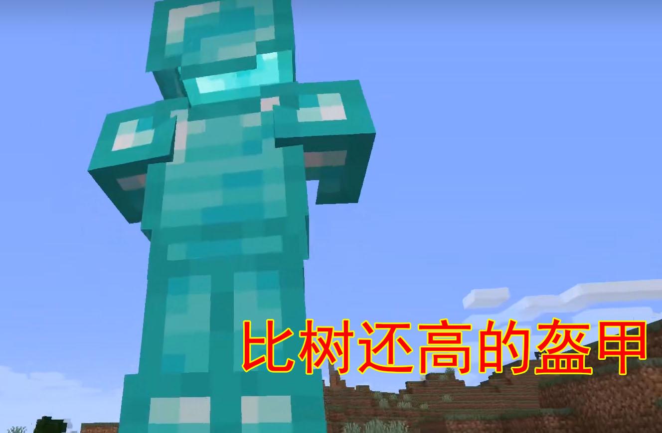 同时说到盔甲了,再跟大家说一个比树还高的盔甲。其实在《我的世界》里面我们可以通过指令或者是外部编织器,对游戏当中的生物进行一个穿着装备的效果,而通过使用发射器进行穿着的生物,在表面是不会显示来。