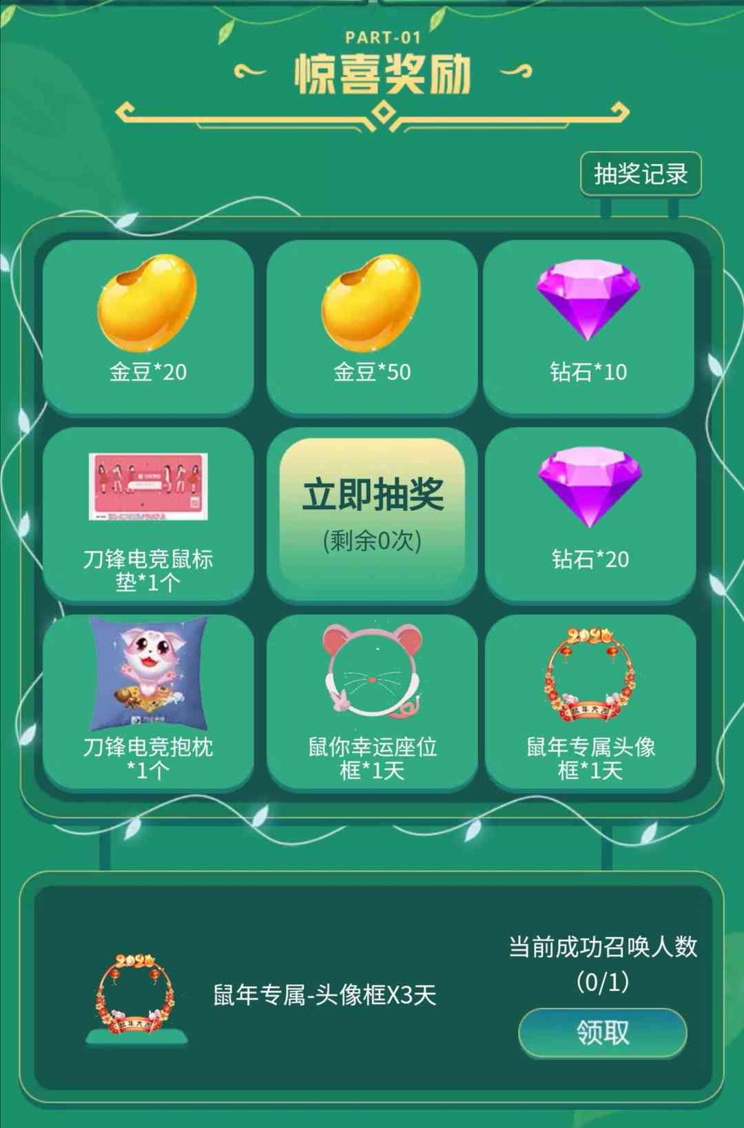 每召唤成功一次可获得积分,积分可用于积分商店中的奖励兑换,不仅有金豆、钻石、装扮奖励,还有各种刀锋电竞的周边。同时召唤成功人数越多,获得的奖励也越丰厚哦。