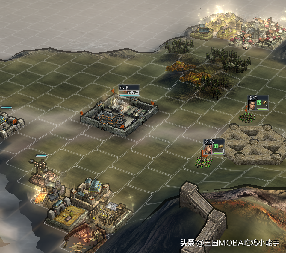 北平城不仅地理位置优越,而且城池周围的土地环境也非常不错,四处都是草地,就连口袋阵内的大片区域也都是草地环境。这也就意味着,围绕着北平城玩家可以建设大量的防御设施,比如在必经之路上大量建设箭楼,投石这种辅助攻击敌军。另外在草地上我们也可以建设“训练场”,比如建设梅花桩,让自己手上的部队进行属性,兵种适性的锻炼,也能快速提升发展势力的技巧值。可以看出,在北平城这样的地貌环境之下,完全可以多样性的龟缩发展,不仅可以发展经济,而且还能安全的锻炼武将的属性和势力的技巧值。
