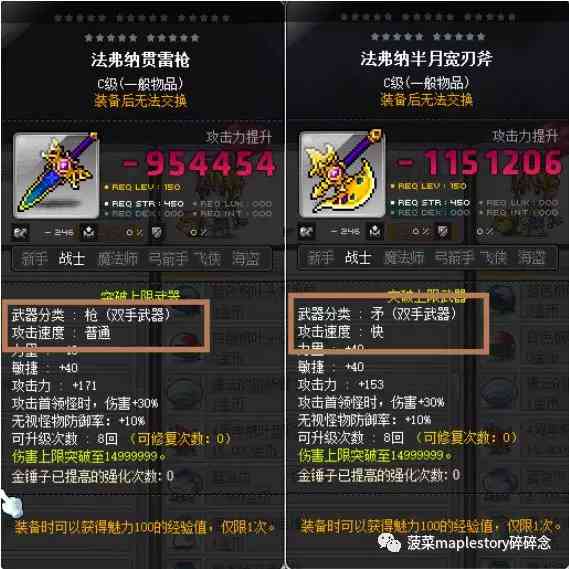 以法弗纳武器为例,可以看到矛在武器攻速上,会快枪一个攻击速度,攻击力而言,枪更高。
