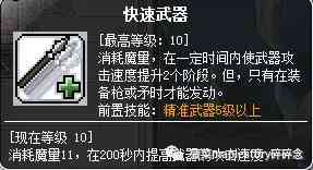 同时,由于2转技能精准武器的关系,装备枪攻击速度增加1个阶段,伤害增加5%: