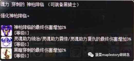 被动技能选择:神枪降临-强化,神枪降临-无视,神枪降临-首领怪杀手,重生契约-伤害。以上这四个没有争议。剩下1点,玩家根据实际需求,例如如果不满暴击的情况下,可以选择重生契约-暴击率。如果想让灵魂助力效应打出更高伤害,则加灵魂助力-强化: