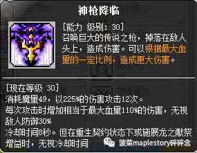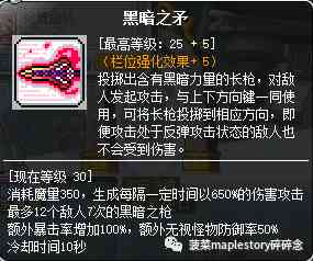 黑暗之矛属于短时间内的爆发技能,冷却时间很短,贴脸打BOSS拥有很高的爆发力。