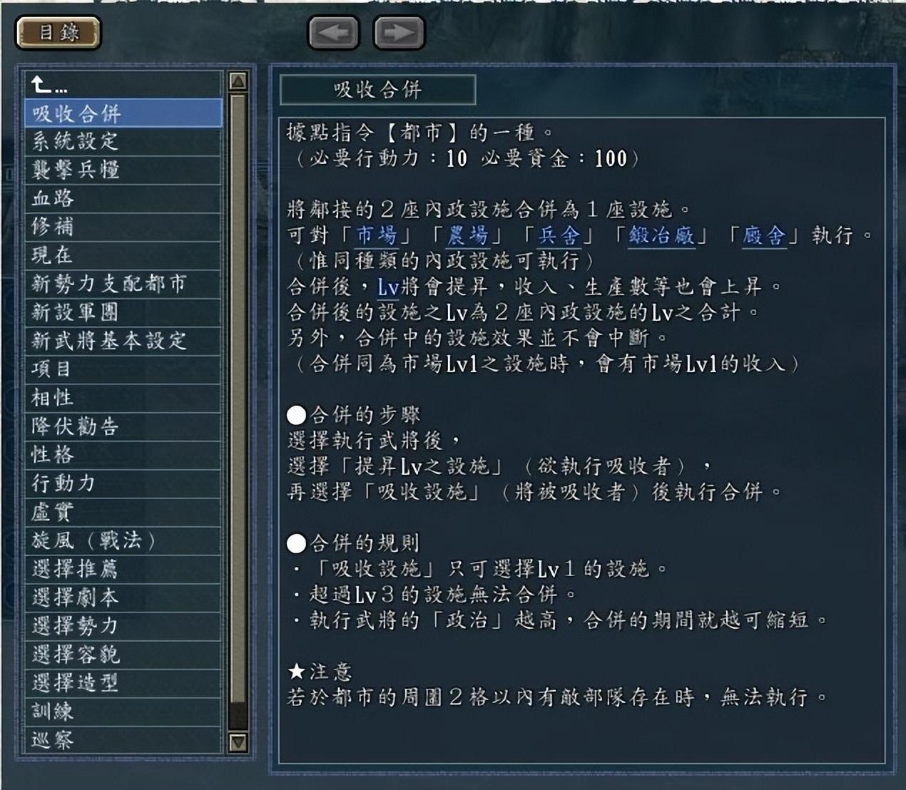 在三国志11中,无论咱们选择了什么难度,初始的兵马钱粮基本上都很难支撑咱们进攻敌对势力的,因此若是想要积攒到足够的兵马与钱粮的话就需要先搞好内政建设,而咱们搞内政建设不光得提前在心中规划一个大致的蓝图,在实际操作的过程中还需要进行合并操作,若是大势力倒还好,大势力武将多质量好建造一座三级建筑拉满的城市对于这些势力而言并不算麻烦,但若是选择了一些普通势力的话那可就需要蒸腾一番了……