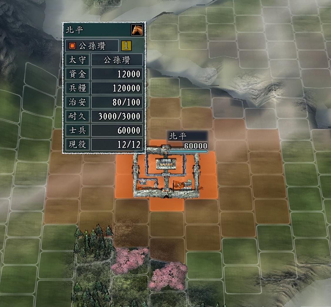 比如上面两张图,我们以公孙瓒为例,第一张是电脑AI的开局基础资源,第二张图是玩家的开局基础资源。