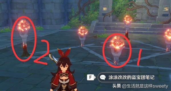 3、而爬墙需要把主角的属性换成岩属性,在岩石神像那里转换属性,拿到3个晶体钥匙以后回到圆柱。