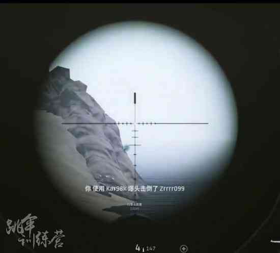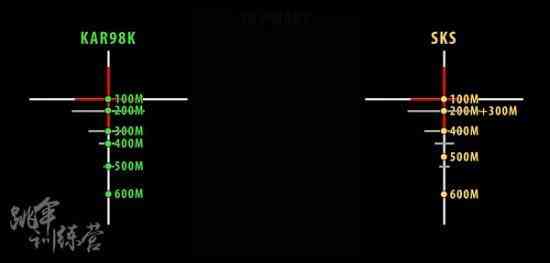 400m:人物肩与四倍镜四倍镜98k400米准线同宽,八倍镜300米瞄点(圆圈下部)到胯部