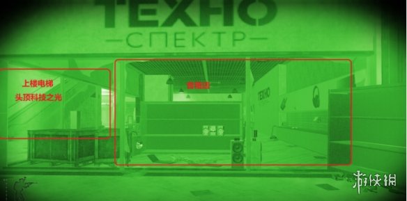 看完音像店,我们抬头踩着电梯扔着雷顶着枪林弹雨冲到科技之光,这里可以说是显卡游戏机的老家,怎么说也会出些好东西,这里值得一提X2的就是图中圈出来的武装箱,上面低概率刷半改武器,常规刷一些武器配件,科技之光的柜台很高,游戏机很扁,抬头看看说不定会有一些意外之喜。