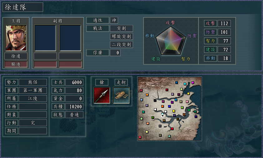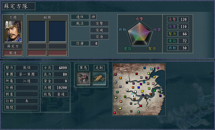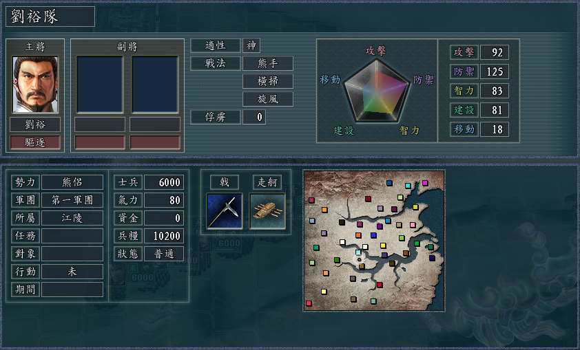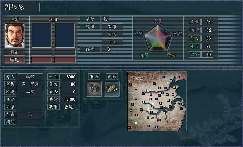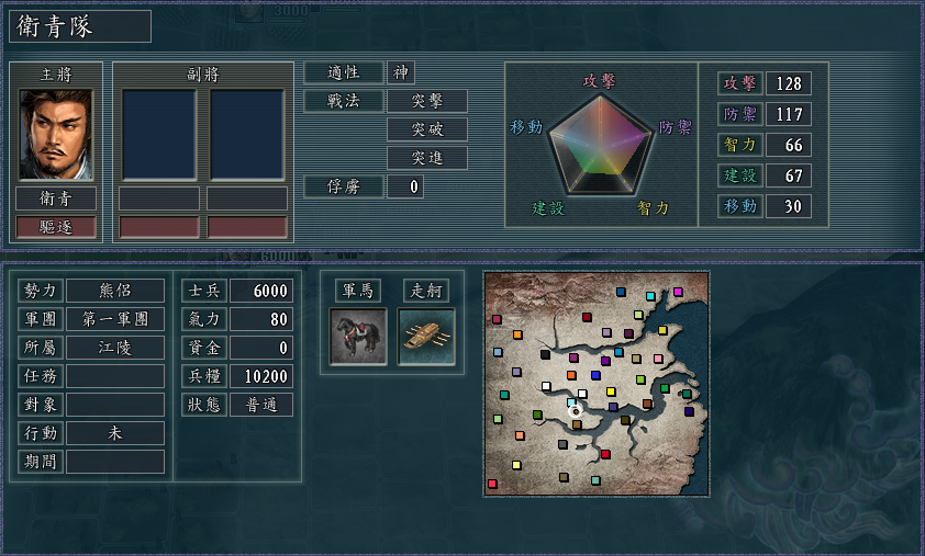 然后让刘裕带上了神适性的戟兵,结果尴尬的发现,虽然部队的防御值大幅提高,但是攻击力反而还有骑兵高。