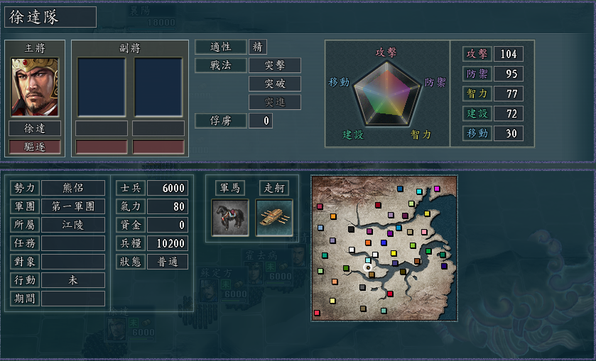 徐达的统率值虽然比刘裕低一点,但是骑兵适性也比刘裕高一级,达到了精(A)适性。