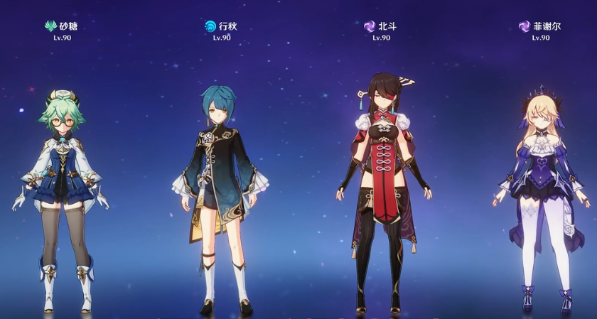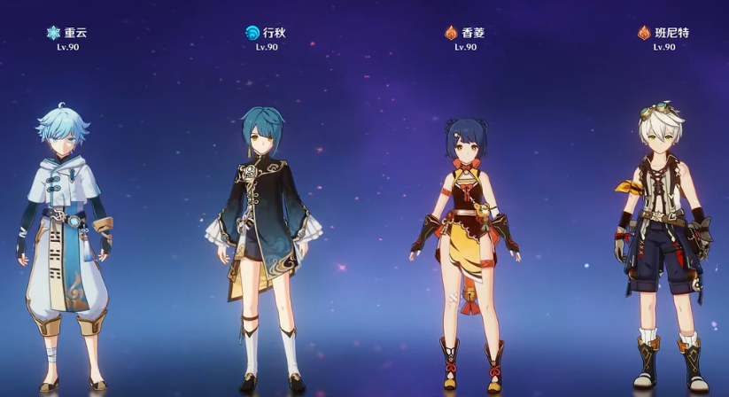 四星国家队阵容主要由班尼特、行秋、重云、香菱组成,这是一群后台输出角色组成的队伍,没有严格意义上的主 c 和副 c 之分。