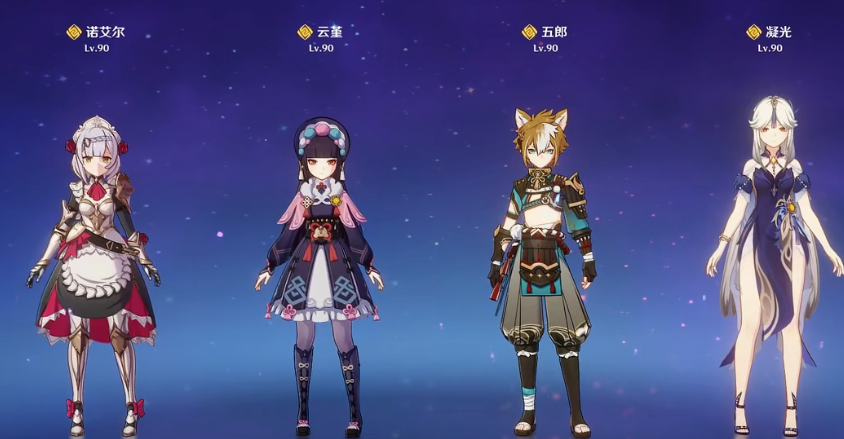 女仆高达阵容由诺艾尔、云堇、五郎、凝光组成,女仆诺艾尔本身就有着超强的对群能力,云堇和五郎可以给女仆提供大量的普攻和防御方面的加成,同时凝光也有着超高的爆发能力,可以弥补整个队伍对单输出的不足。