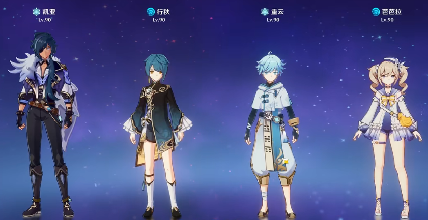 四星永冻队主要由凯亚、行秋、芭芭拉、重云组成,重云的天赋能够减少技能的cd ,并且也能够给前台的角色提供冰属性的附魔,能够让凯亚的战场持续的打出冻结的反应,整个队伍的输出也会变得非常顺滑。